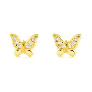 Girl's 9K Yellow Gold Earrings Shiny Zirconia Butterfly