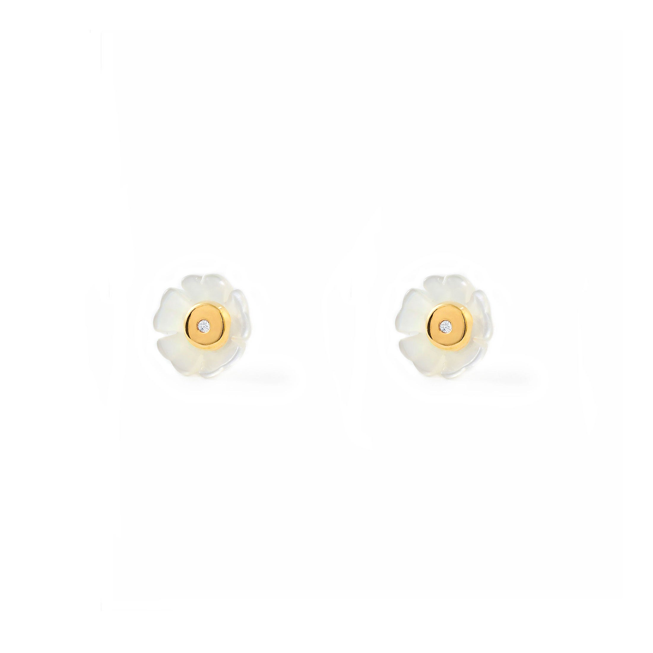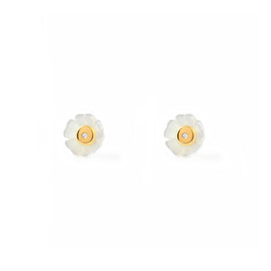 Girl's Earrings 9K Yellow Gold Mother of Pearl Shiny Zirconia Flower