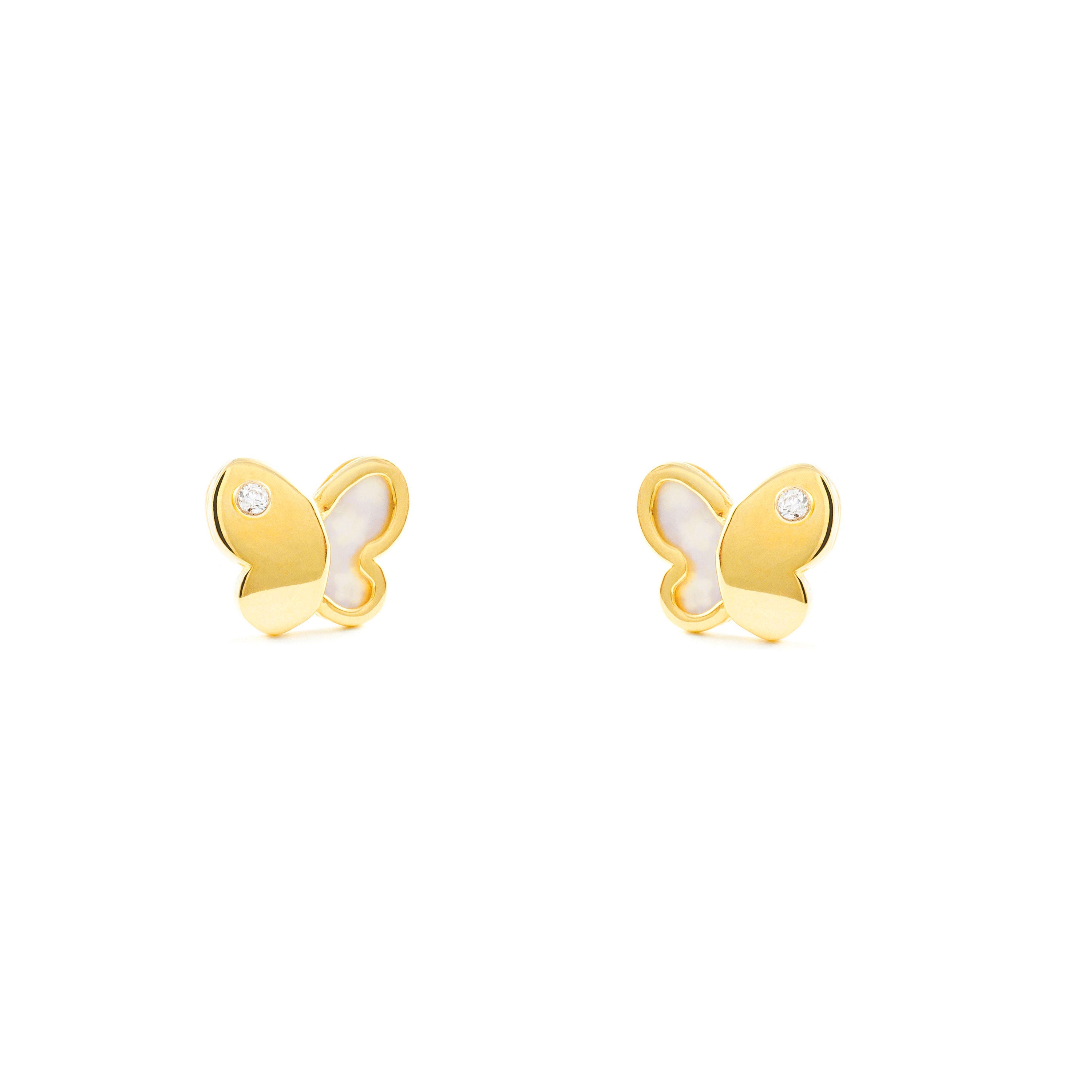 Girl's 9K Yellow Gold Mother of Pearl Shiny Zirconia Butterfly Earrings