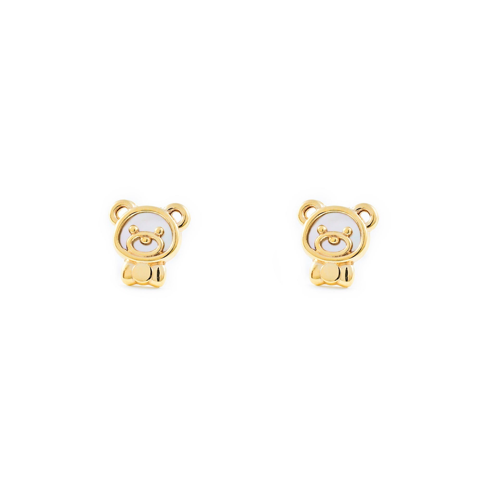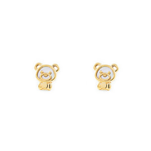 Girl's 9 Carat Gold Earrings (375/1000) Mother of Pearl Bear