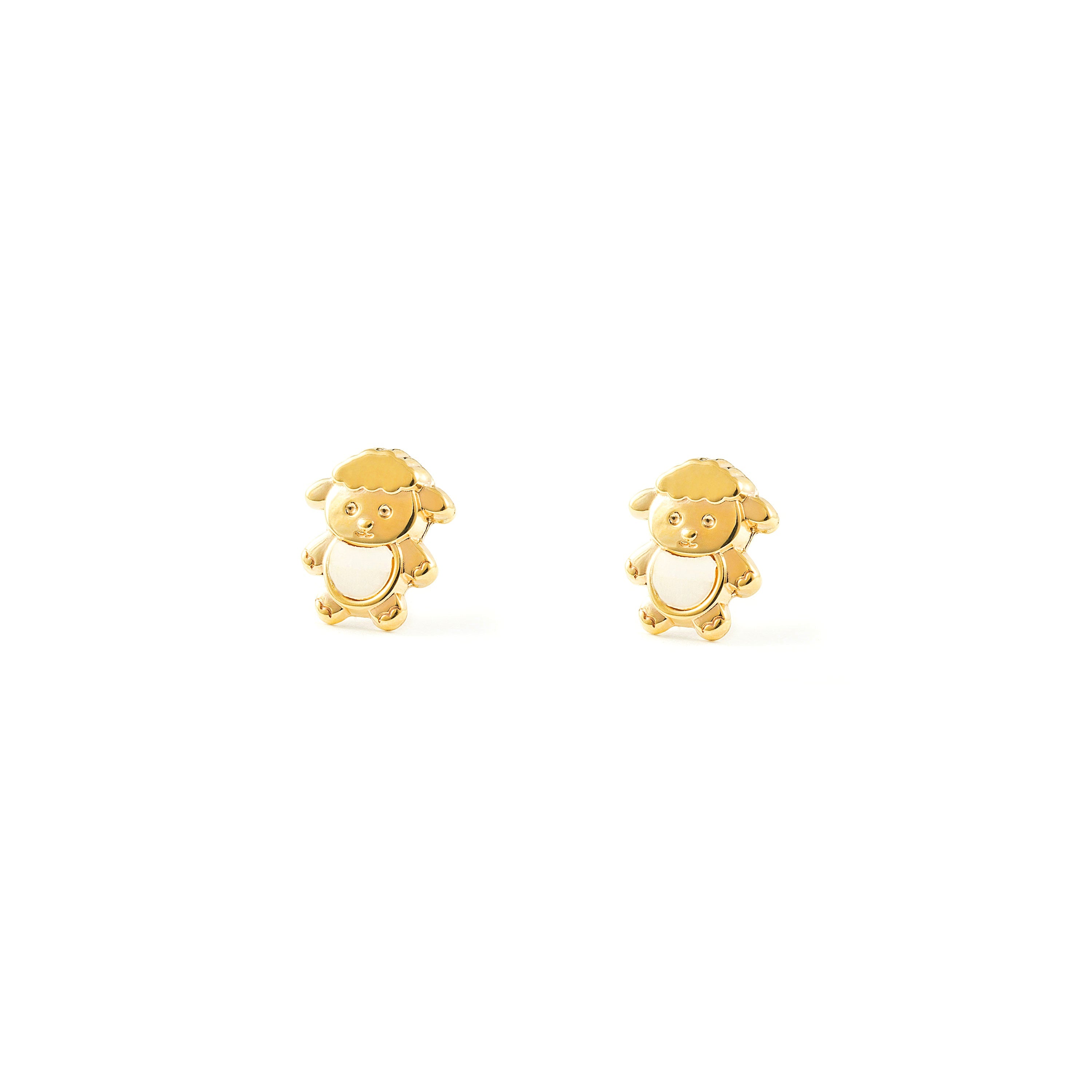 Girl's Earrings 9 Carat Gold (375/1000) Mother of Pearl Sheep