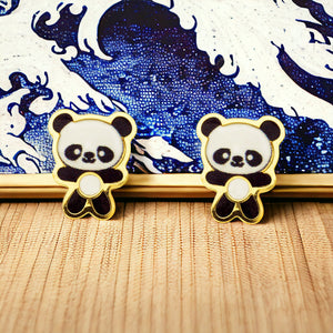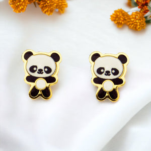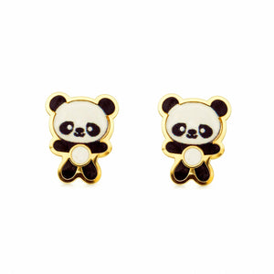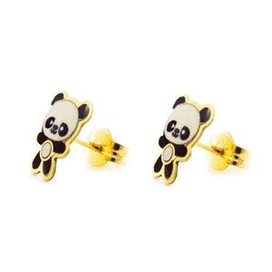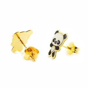 Girl's Earrings 9K Yellow Gold Bear Multicolor Shiny Enamel