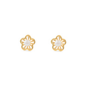 Girl's Earrings 9K Yellow Gold Pearl Button 3.5 mm Matte and Shiny Daisy Flower