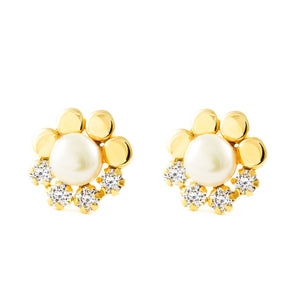 Girl's Earrings 9K Yellow Gold Button Pearl 5.5 mm Shiny Zirconia