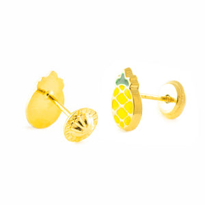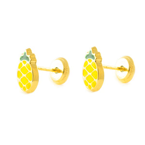 Girl's Earrings 9K Yellow Gold Pineapple Green-Yellow Shiny Enamel