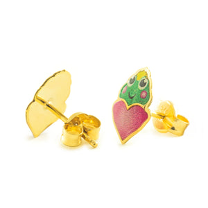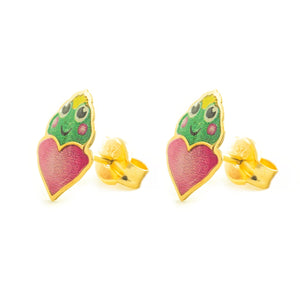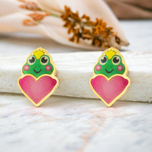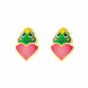 Girl's Earrings 9K Yellow Gold Frog Multicolor Shiny Enamel