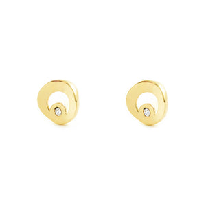Girl's Earrings 9K Yellow Gold Round Shiny Zirconia