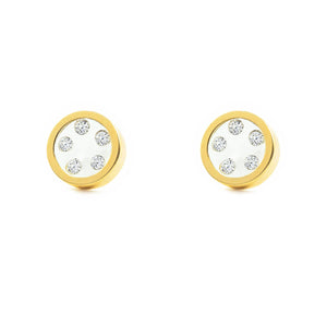 Girl's Earrings 9K Yellow Gold Round Shiny Zirconia
