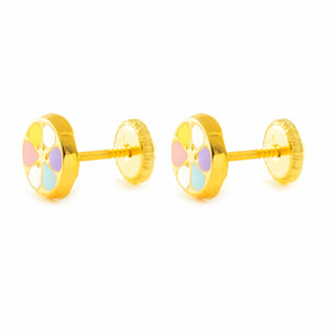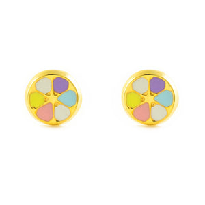 Girl's Earrings 9K Yellow Gold Round Multicolor Shiny Enamel