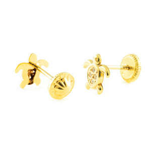 9K Yellow Gold Turtle Zirconia Shine Girl's Earrings