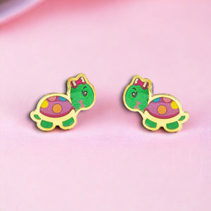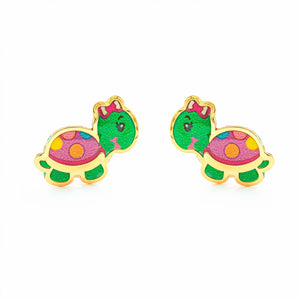 Girl's Earrings 9K Yellow Gold (375/1000) Bright Multicolor Enamel Turtle