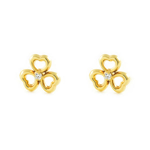 Girl's Earrings 9K Yellow Gold Shiny Zirconia Clover