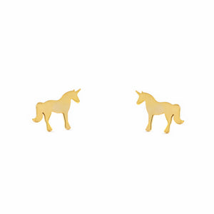 Girls' 9K Yellow Gold Shiny Unicorn Earrings