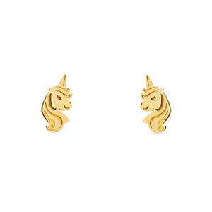 Girls' 9K Yellow Gold Shiny Unicorn Earrings