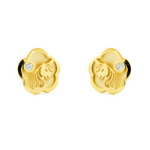 Pendientes Niña oro margarita con Unicornio calado y circonita (9kts)