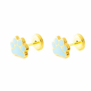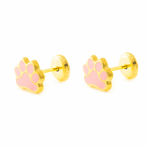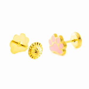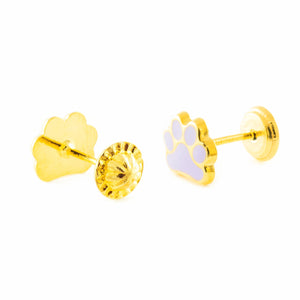 9K Yellow Gold Girl's Earrings Shiny Enamel Paw