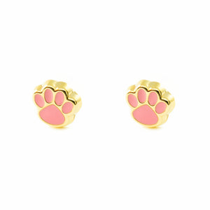 Girl's 9K Yellow Gold Earrings Clear Shiny Pink Enamel