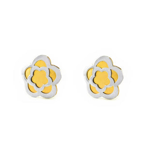 Girl's Earrings 18K Bicolor Gold Matte and Shiny Daisy Flower