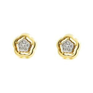 Girl's Earrings 9K Bicolor Gold Daisy Flower Shiny Zirconia