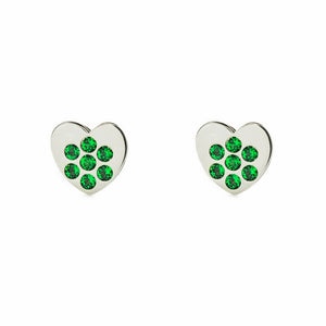Girl's Earrings 9K White Gold Heart Precious Synthetic Emeralds Shine