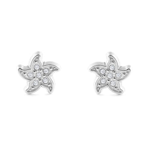 Girl's Earrings 9K White Gold Shiny Zirconia Star