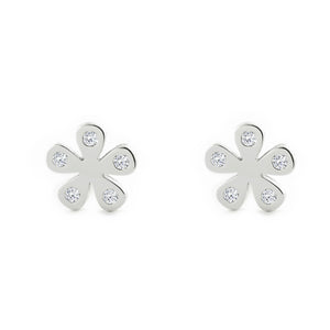 Girl's Earrings 9 Carat White Gold (375/1000) Zircon Flower