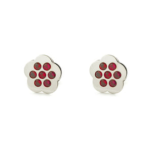 Girl's Earrings 9 Carat White Gold (375/1000) Ruby Flower
