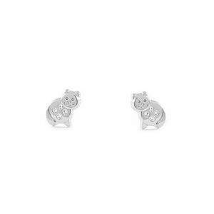 Girl's Earrings 9 Carat White Gold (375/1000) Zircon Cat