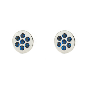 Girl's 9K White Gold Earrings Round Precious Synthetic Sapphires Shine