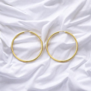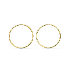 18K Yellow Gold Earrings Flexible Round Shiny Hoops 30 x 1.5 mm