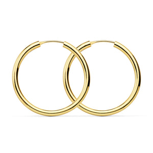18K Yellow Gold Earrings Shiny Flexible Round Hoops 30 x 2 mm