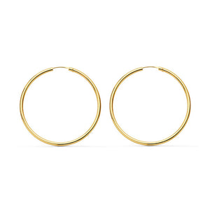 18K Yellow Gold Earrings Shiny Flexible Round Hoops 35 x 1.5 mm