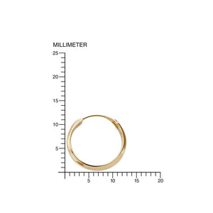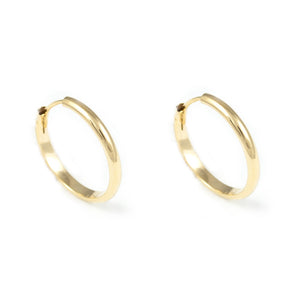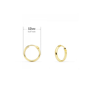 9K Yellow Gold Half Round Hoop Earrings Shiny 12 x 2 mm