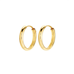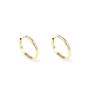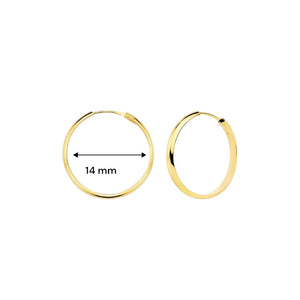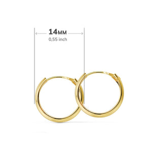 9K Yellow Gold Half Round Hoop Earrings Shiny 14 x 2 mm