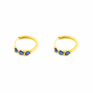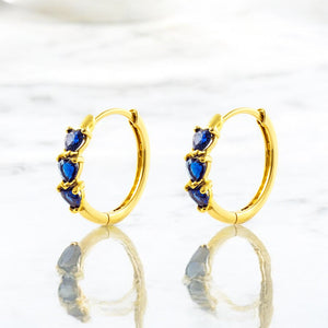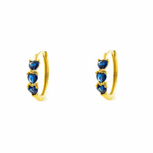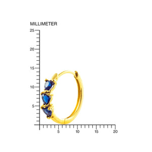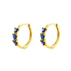 9K Yellow Gold Hoop Earrings Round Hearts Synthetic Precious Sapphires Brilliance 14.5 x 3 mm