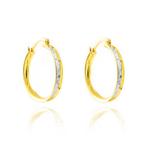 Women's Earrings 18 Karat Bicolor Gold (750/1000) Textured Hoops 19x3 mm