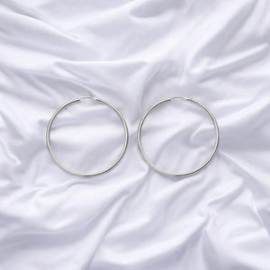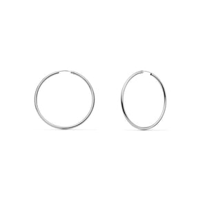 18K White Gold Earrings Flexible Round Shiny Hoops 20 x 1.2 mm
