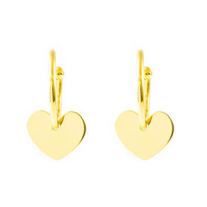 Sterling Silver Golden Shiny Heart Hoops Earrings 25 x 14 mm