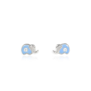 Sterling Silver Elephant Earrings with Blue Enamel Shiny Zirconia