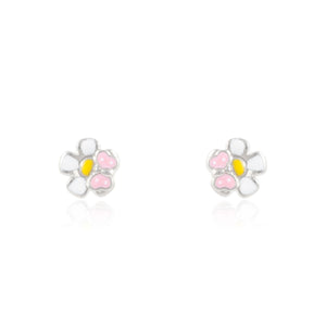 925 Sterling Silver Earrings Light Pink Enamel Flower