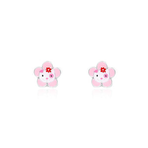 Sterling Silver Cat Earrings with Multicolor Shiny Enamel