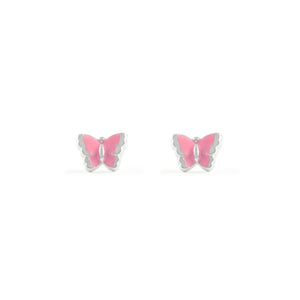 925 Sterling Silver Pink Enamel Butterfly Earrings