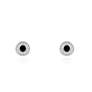Sterling Silver Round Black Enamel Shiny Zirconia Earrings
