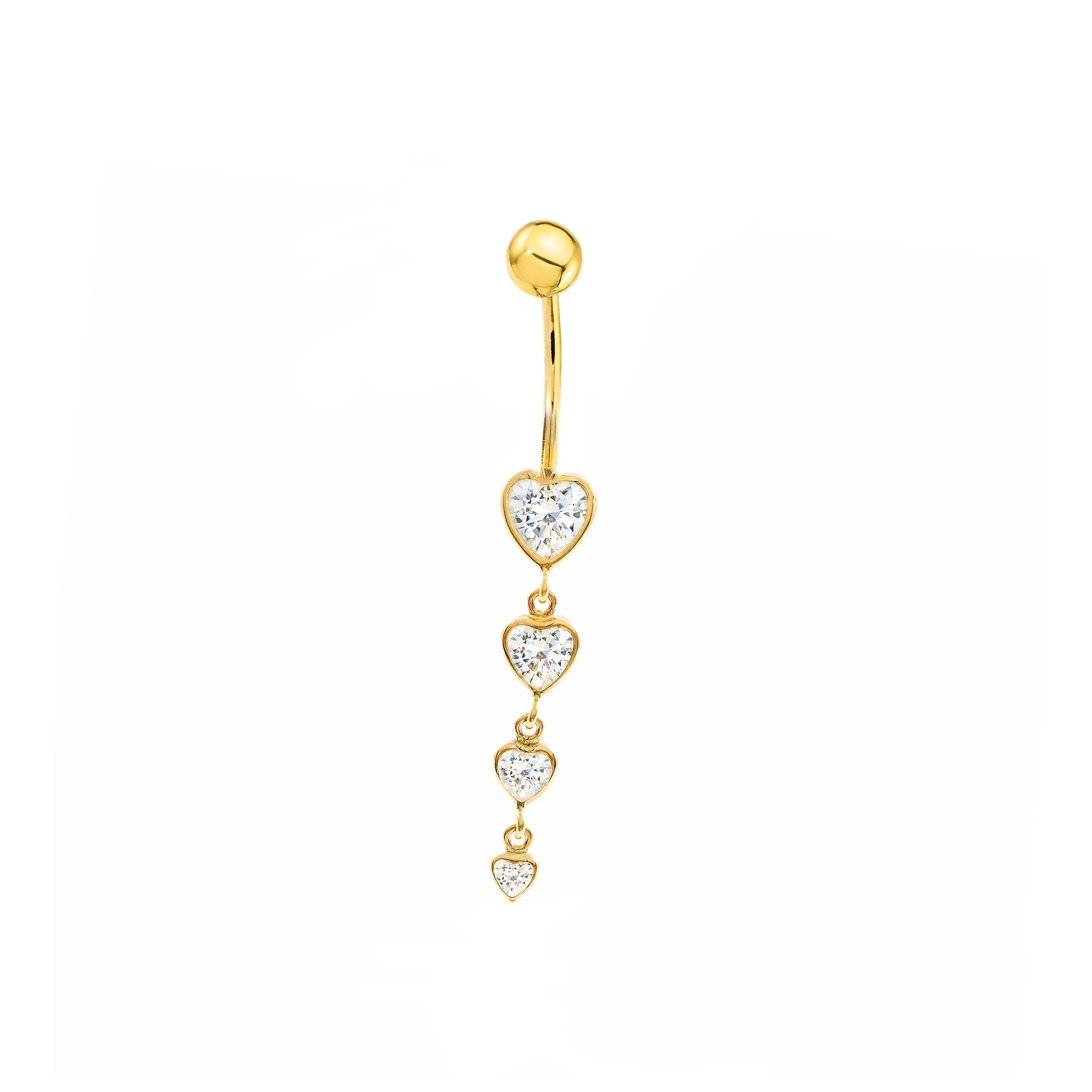 9K Yellow Gold Navel Piercing with Shiny Zirconia Hearts