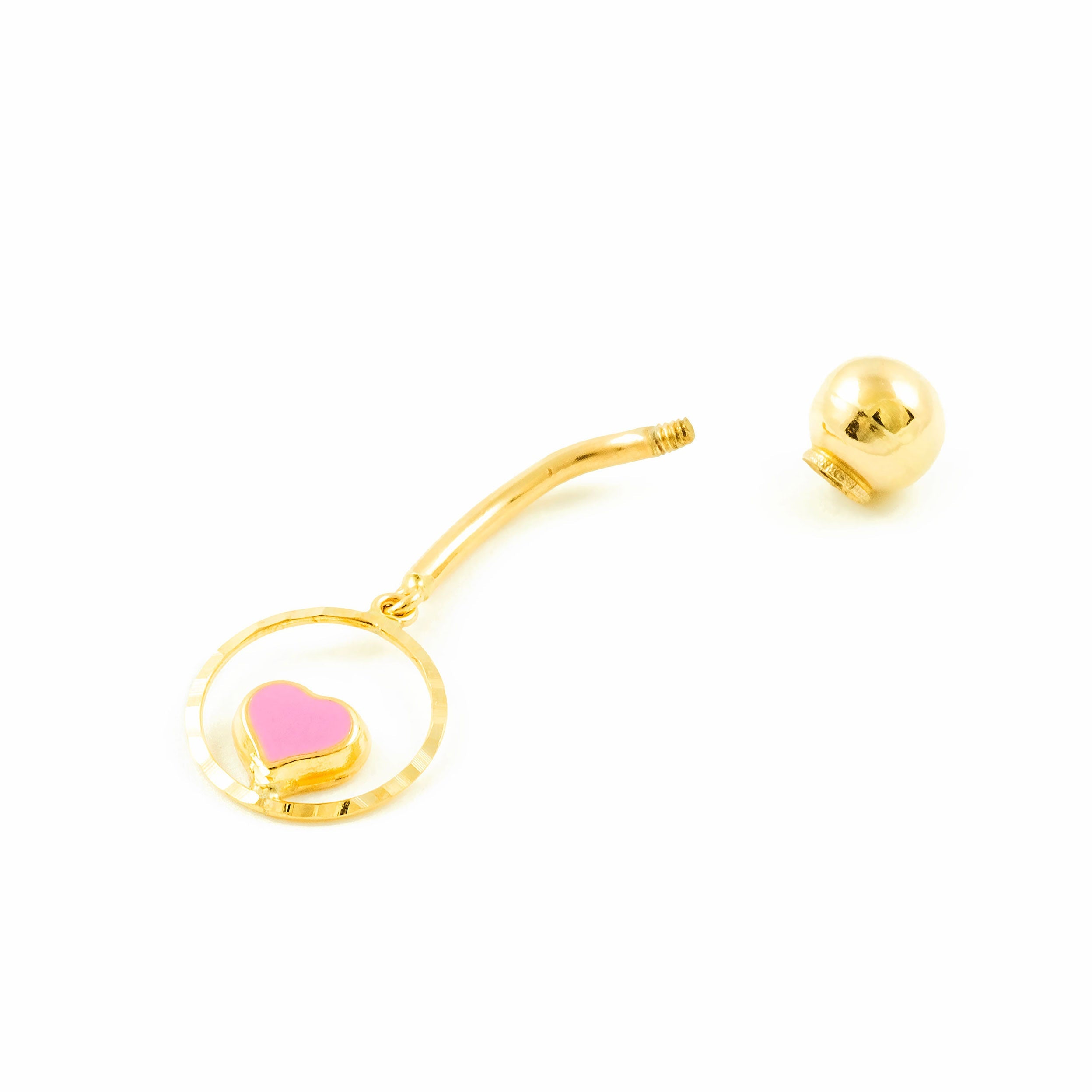 9K Yellow Gold Shiny Pink Heart Enamel Navel Piercing