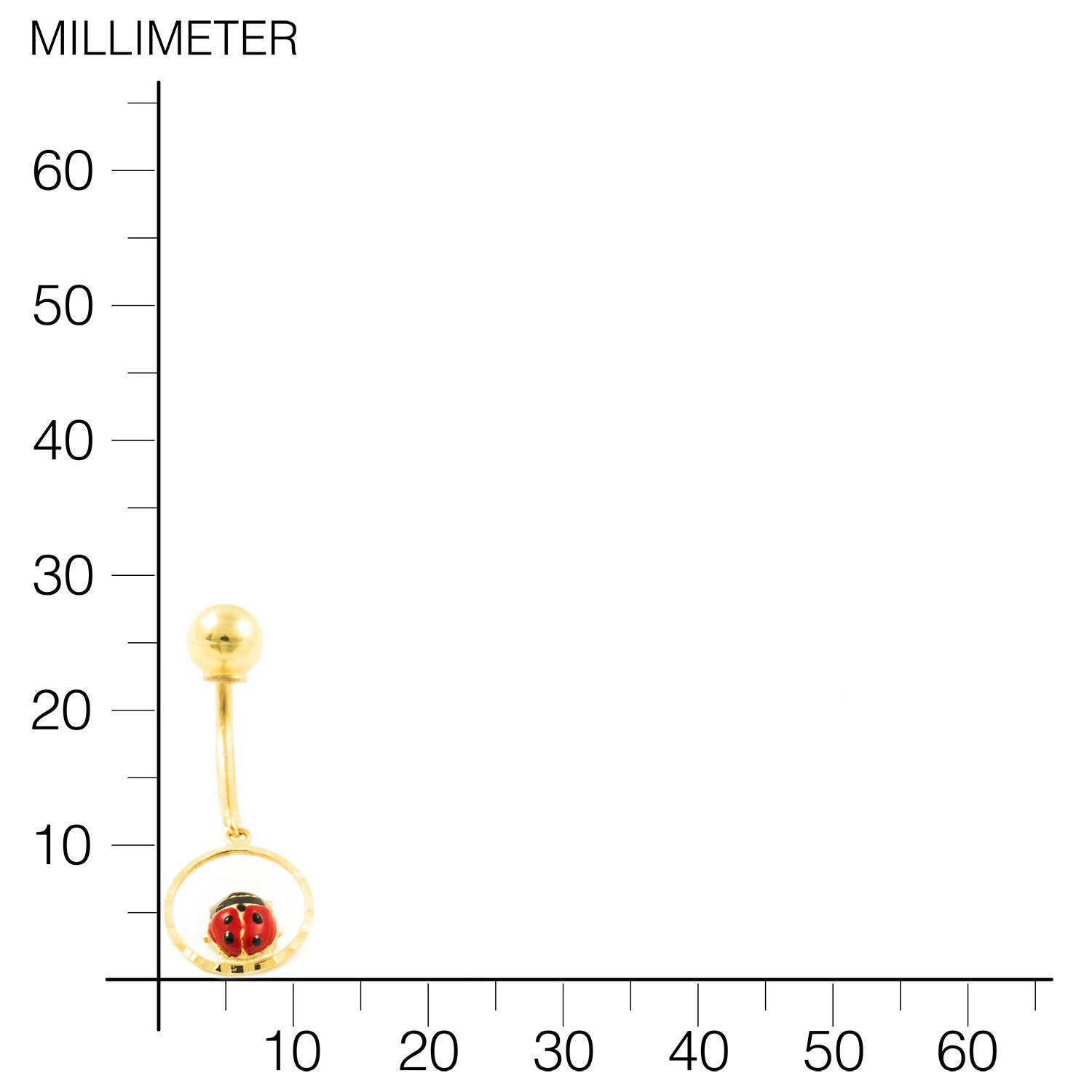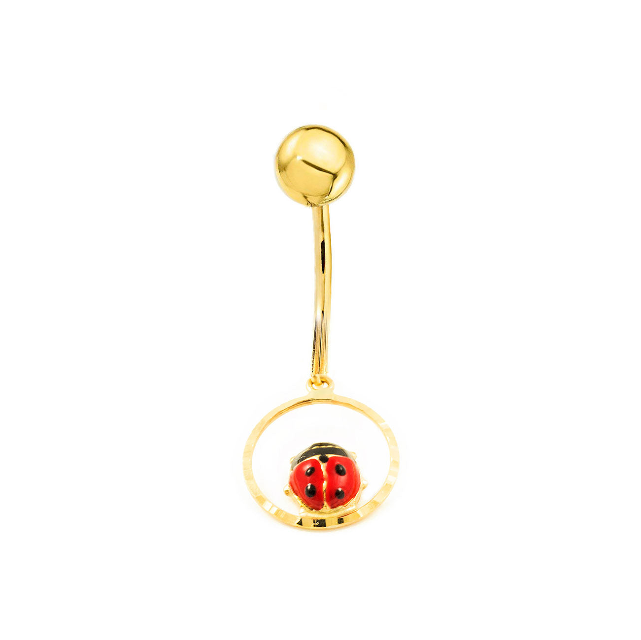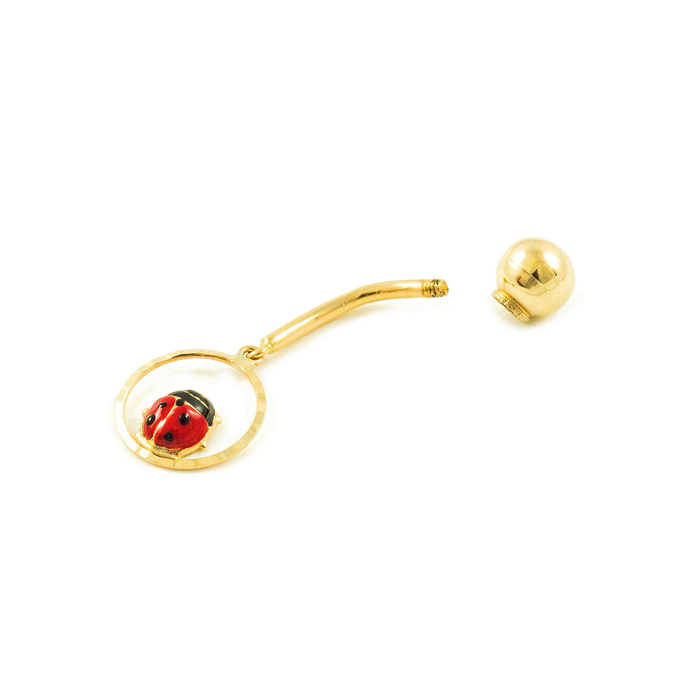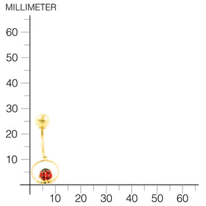 9K Yellow Gold Shiny Red-Black Ladybug Enamel Navel Piercing