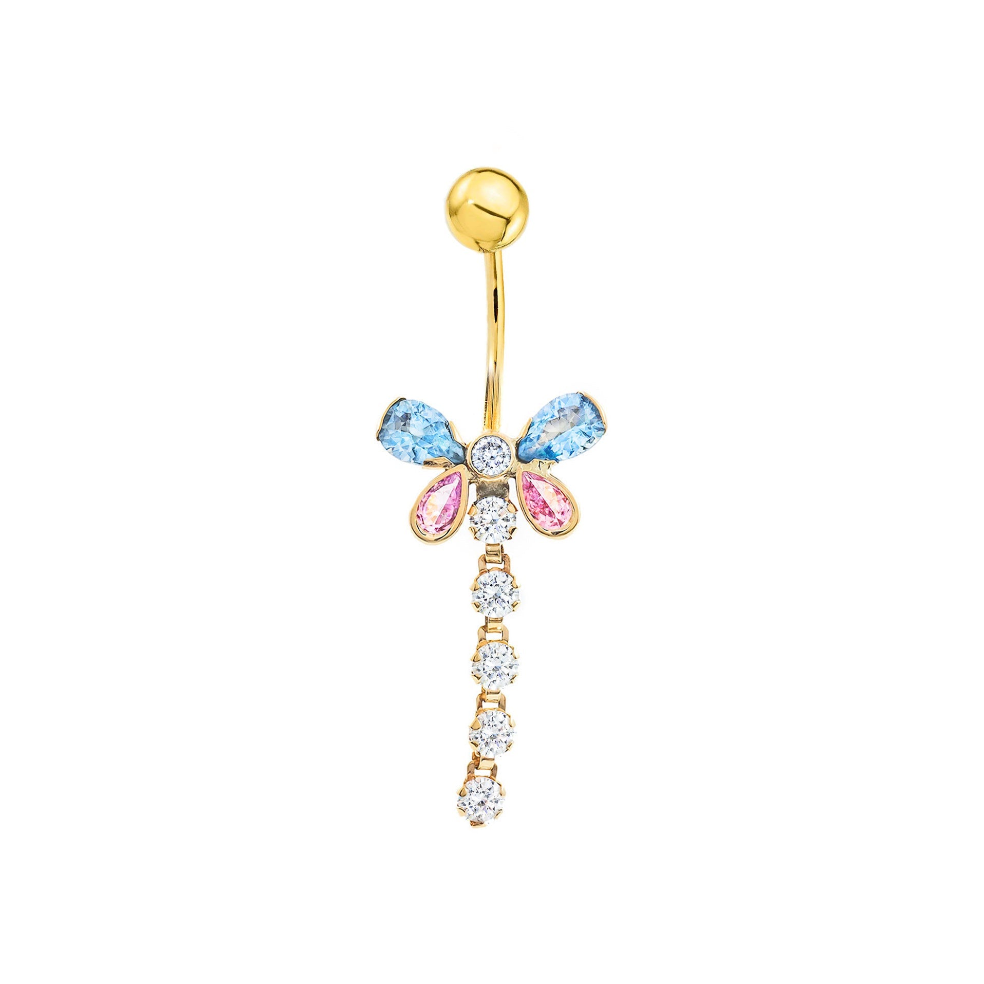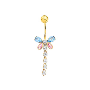 9K Yellow Gold Navel Piercing Butterfly Shiny Zirconia Chain