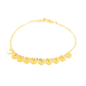 Woman-Girl 18K Yellow Gold Shiny Hearts Bracelet 18 cm