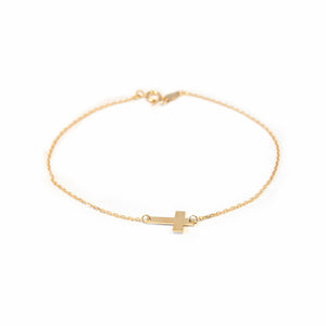 Woman-Girl Bracelet 18K Yellow Gold Horizontal Cross Shiny 18 cm