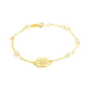 Women's/Girl's Bracelet 18 Karat Gold (750/1000) Angel Round Pearl 4 mm